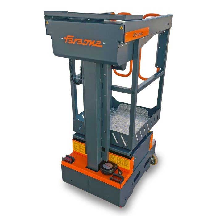 La seguridad es uno de sus principales valores: la cesta proporciona un acceso cómodo y protegido en todo su perímetro, permitiendo trabajar en altura con total estabilidad y minimizando el riesgo de lesiones.
