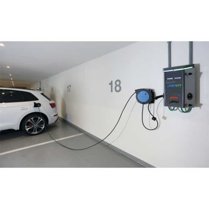 Su diseño automático y fiable permite almacenar el cable de manera ordenada, evitando enredos y prolongando su vida útil, mientras que su carcasa robusta protege el mecanismo en cualquier entorno. Una solución práctica y profesional para la carga de tu vehículo eléctrico.