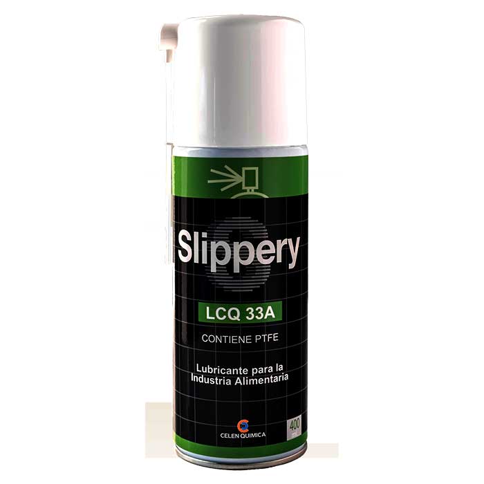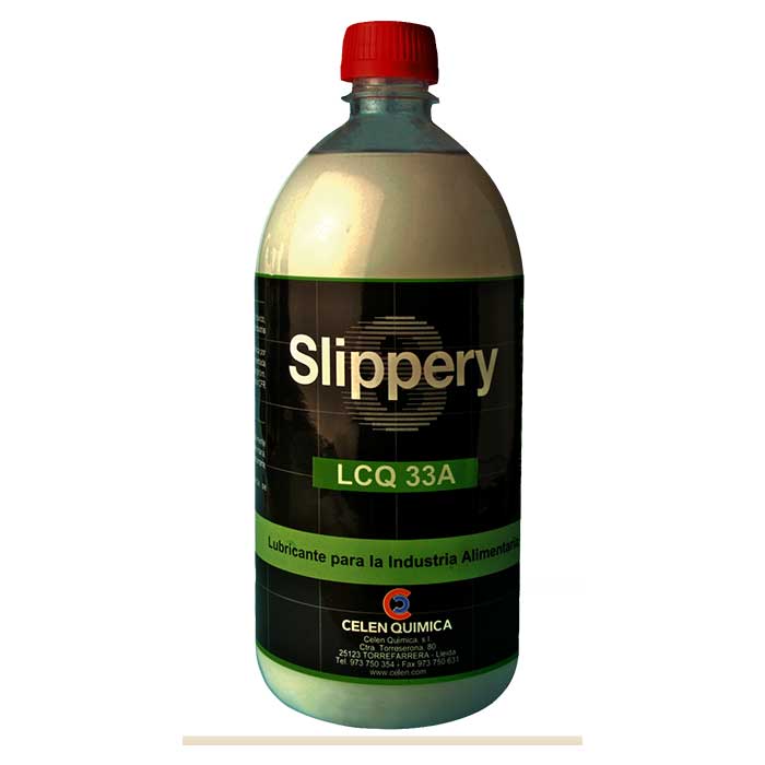 El SLIPPERY LCQ 33A (Lubricante atóxico con PTFE) es un lubricante para la industria alimentaria que cumple la norma H1. Se trata de un lubricante parafínico con PTFE (Politetrafluoretileno), con el menor coeficiente de fricción descubierto hasta la fecha. Está formulado en base sintética e incorpora micropartículas superionizadas de PQL-FLON, inferiores a 0,02 micras. Gracias a estas propiedades, forma una película fina orientada, de 100 a 400 Ångström, que es altamente adherente y deslizante.