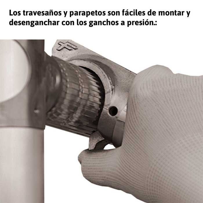 - Travesaños y parapetos fáciles de montar y desenganchar.