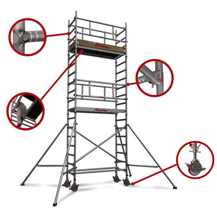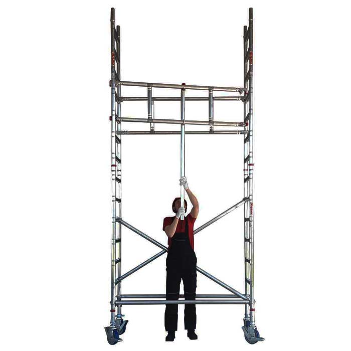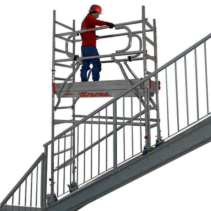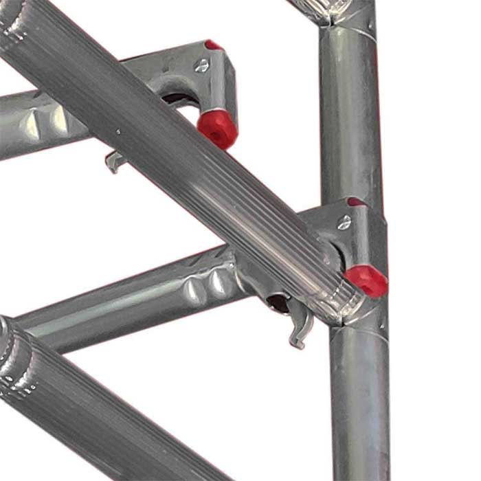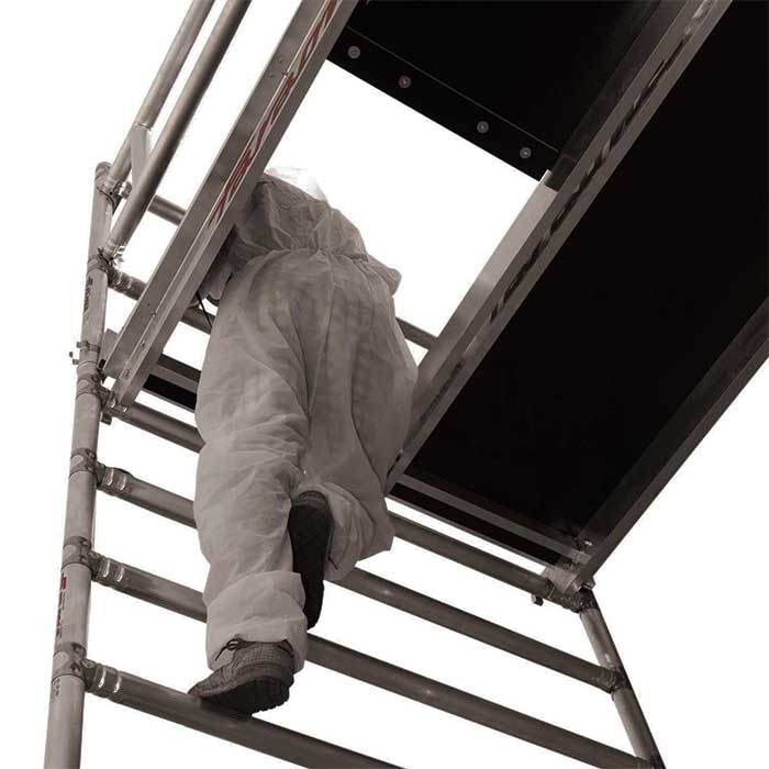 La subida es más cómoda gracias a la menor distancia entre peldaños, con 7 peldaños por cada lateral en lugar de los 6 habituales en otros andamios, proporcionando un ascenso más seguro y ergonómico.