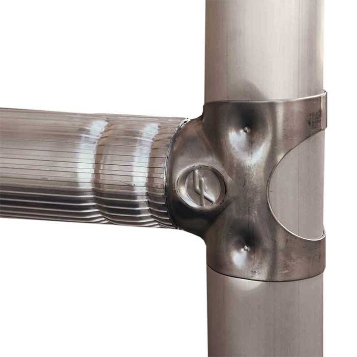 El andamio Top System 75 montaje seguro está fabricado en aluminio extruido con un espesor mínimo de 1,5 mm, ofreciendo ligereza y resistencia. Cuenta con un sistema de montaje seguro que permite instalar la barandilla desde abajo, de modo que el operador accede al área de trabajo completamente protegida, minimizando al máximo el riesgo de caída desde altura.